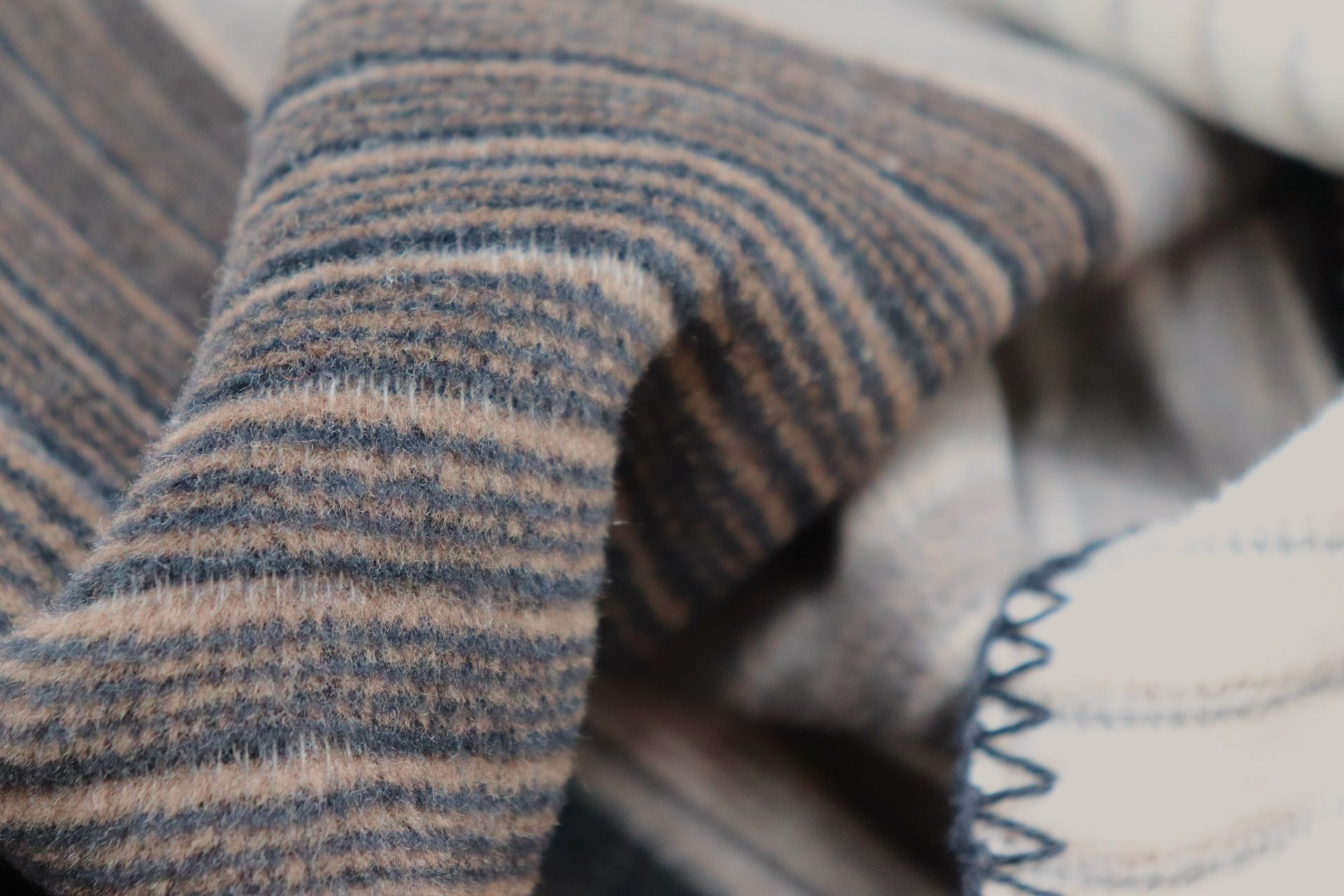 Plaid fra Biederlack i dessin Feel Graphic, som er fremstillet i 58% bomuld, 35% akryl & 7% polyester.