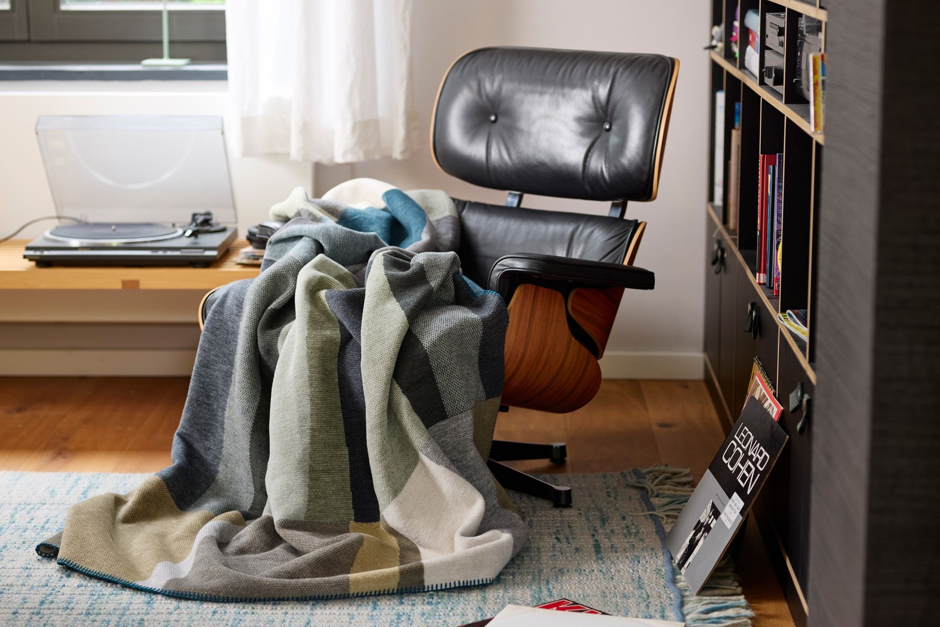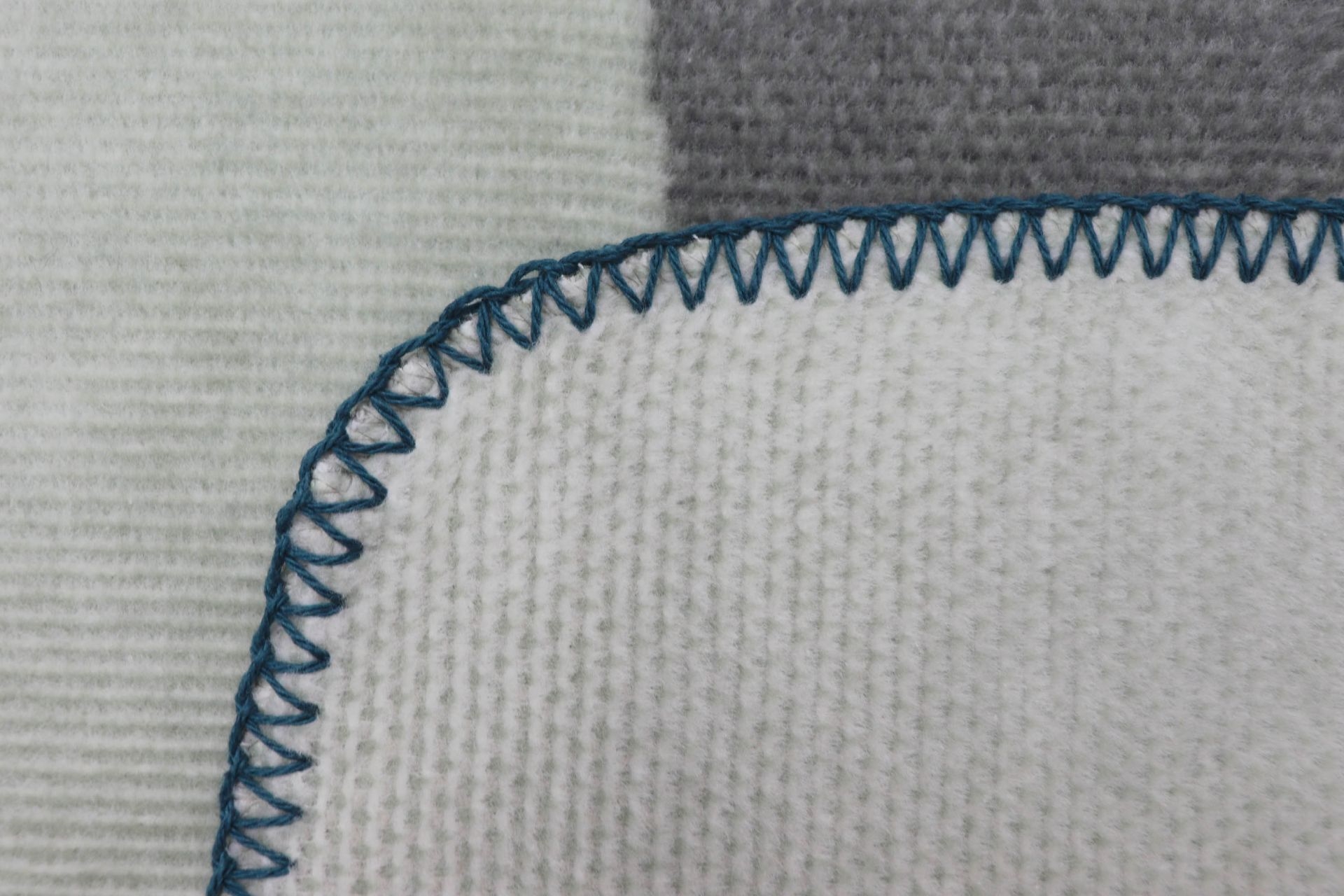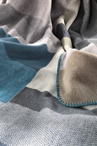 Plaiden er bæredygtigt produceret og lavet af genbrugsgarn af høj kvalitet. Det super bløde tæppe er med overlock kant og med et geometrisk mønster.