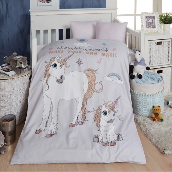 bySKAGEN junior sengesæt, dessin Unicorn med digital print motiv af enhjørninger i 100 % blød bomuld.