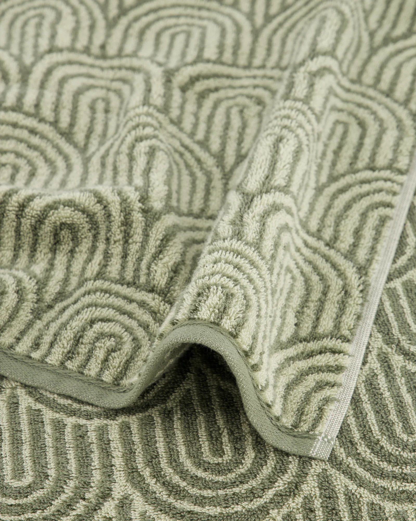 Cawö Håndklæde Serie i 100% bomuld i dessin Maison Bögen Field.  håndklæde serien har en god sugeevne og et grafisk mønster