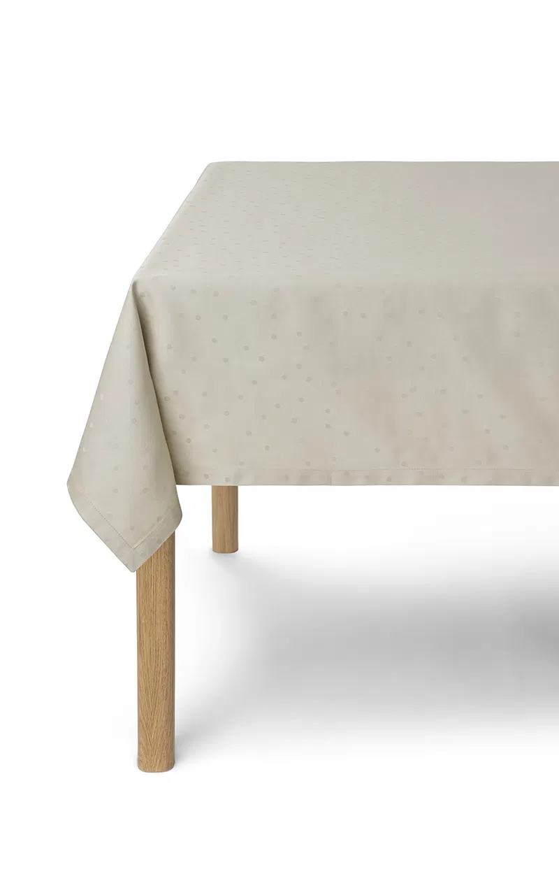 Små, lette prikker spredt i et enkelt mønster giver Confetti-dugen et charmerende og legende udtryk. Dugen er vævet i 100% damaskvævet bomuld – et smukt og elegant valg, når du ønsker en festlig dug, der balancerer et stilrent og tidløst look.