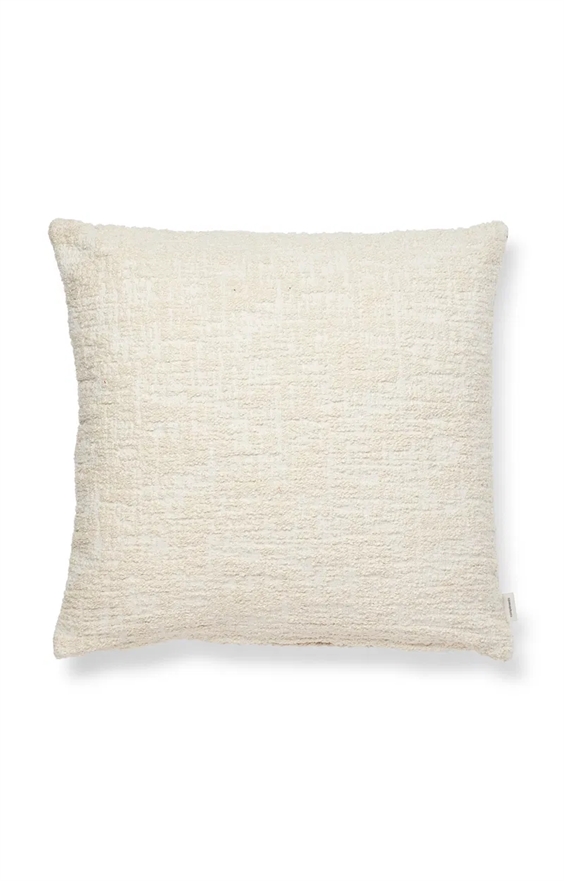 Nora-pude — en taktil favorit til hjemmet. Kombinationen af blødt bouclé og rå struktur skaber et smukt tredimensionelt udtryk, der tilføjer varme og dybde til sofaen eller sengen.