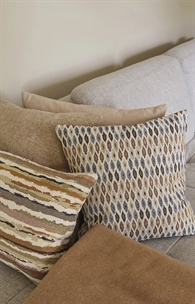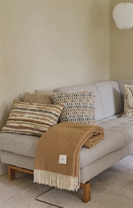 Compliments pudebetræk i dessin Ancona Ochre, sofapuden er med lynlås.