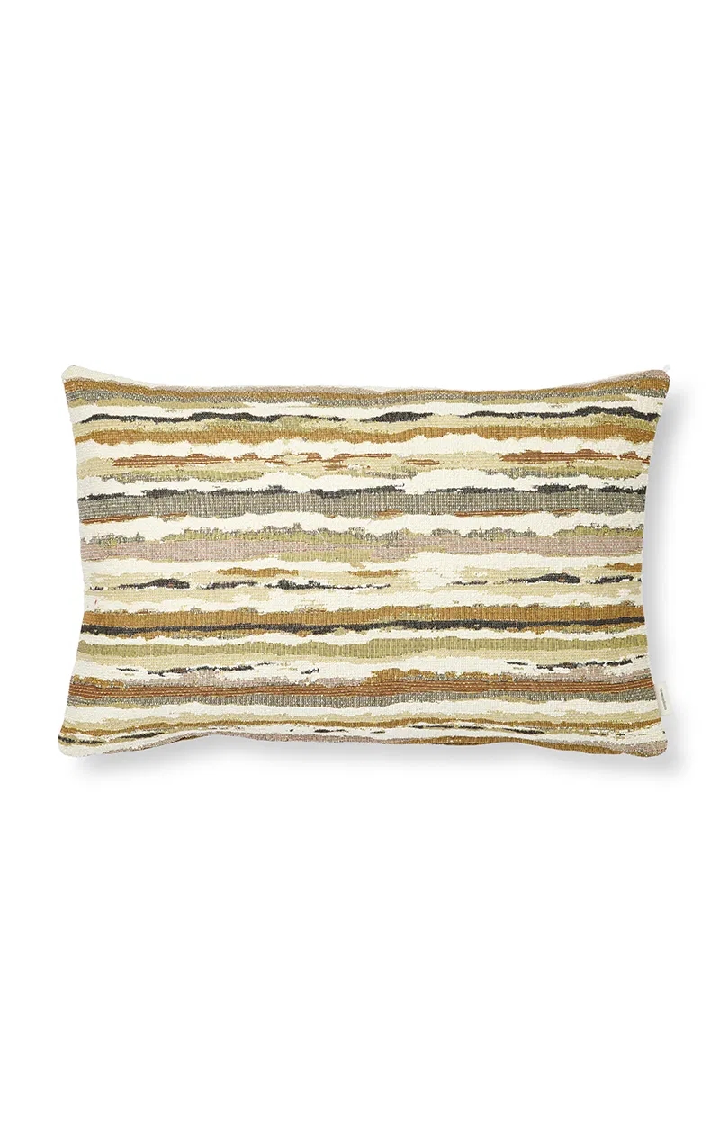 Med sit enkle design af organiske striber og blandede teksturer forener Ancona-puden naturlig æstetik med et grafisk udtryk, fremhævet af smuk bouclé. En klassiker fra COMPLIMENTS.