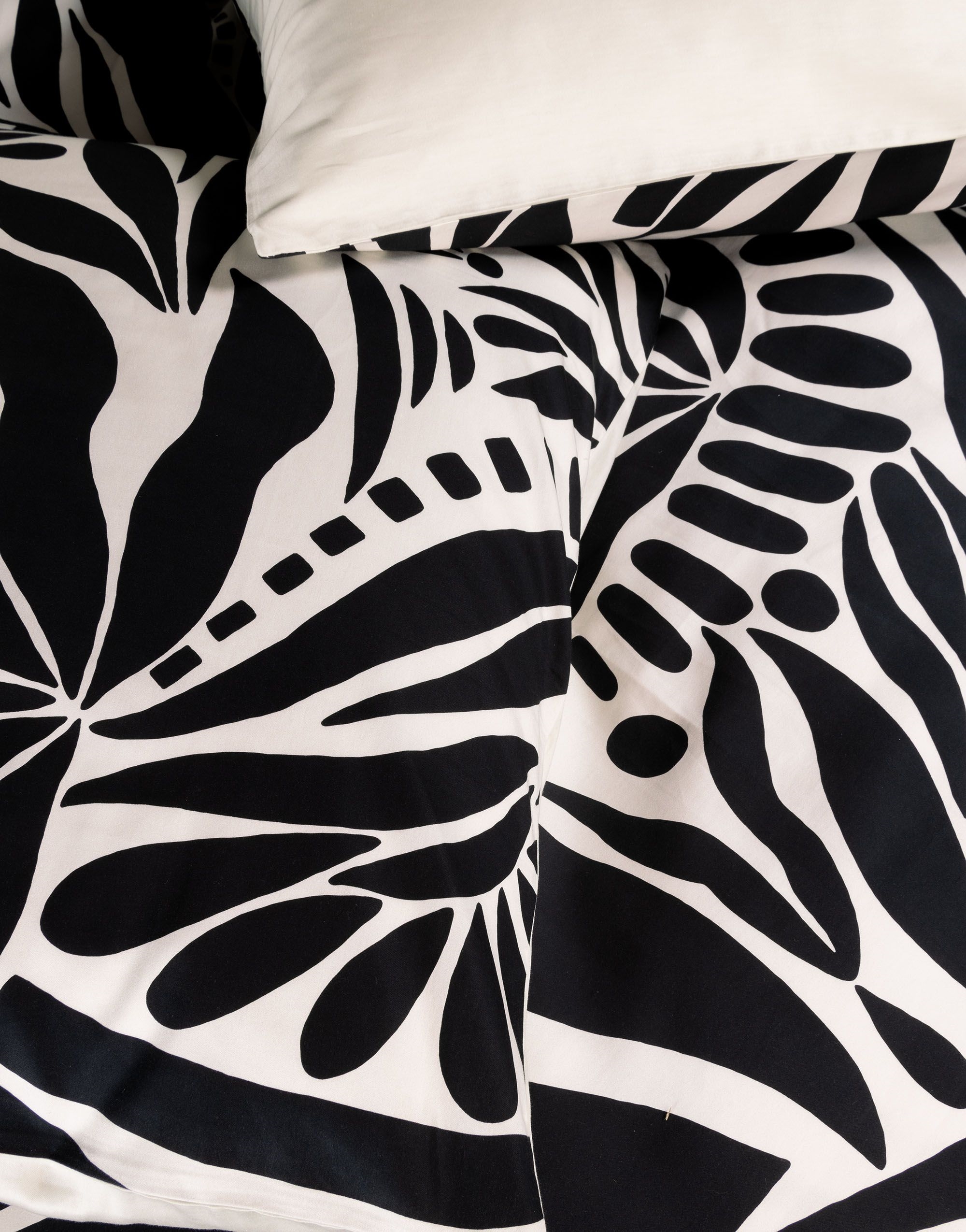 ESSENZA Allori Anthracite sengetøj – Moderne botanisk print