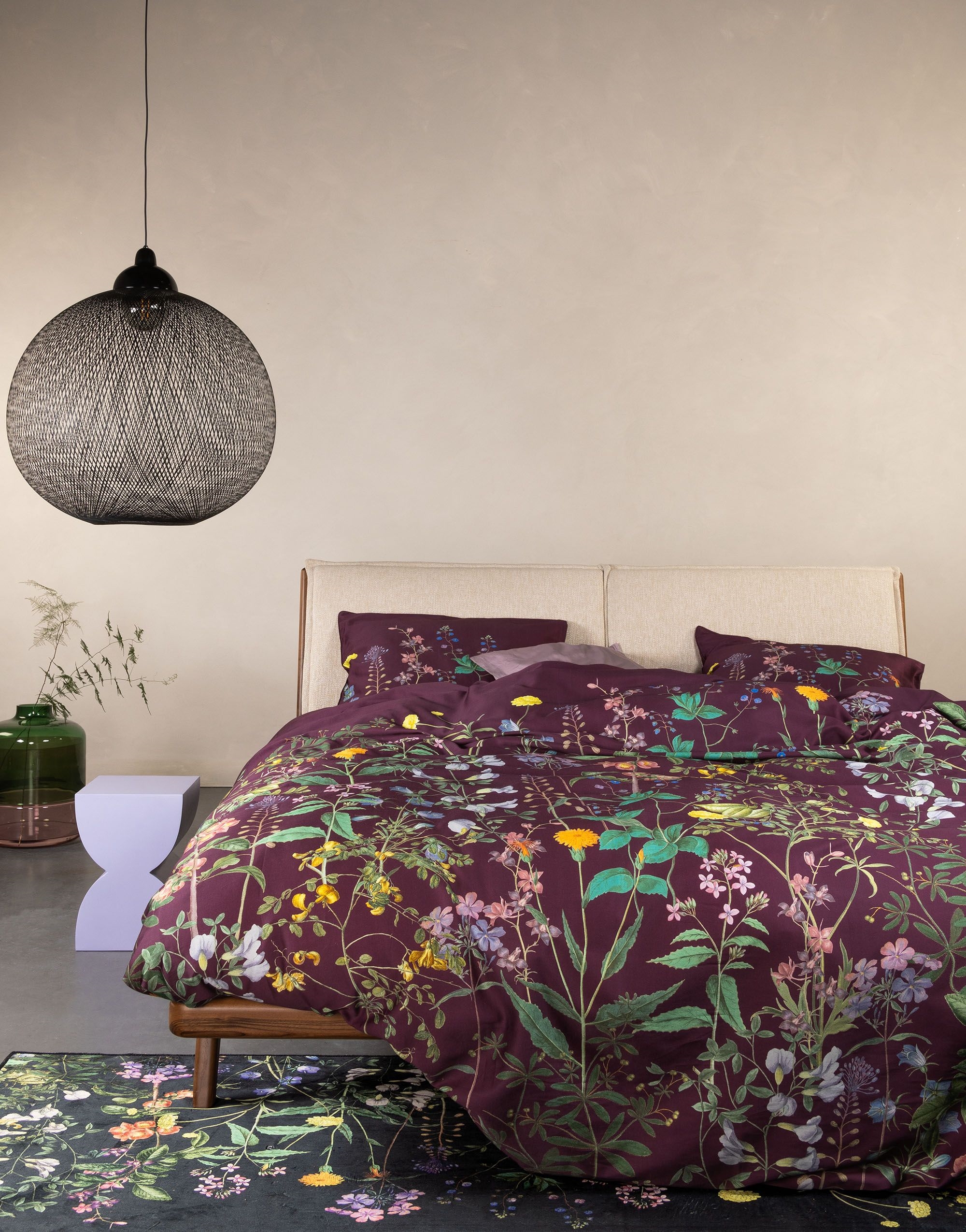 Essenza sengetøj, Augustina Mauve Wine er fremstillet i 100% bomuldssatin.