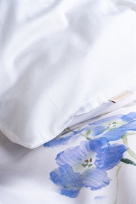 Essenza sengetøj, Blue Flowers Lavinea er fremstillet i 100% bomuldsatin.