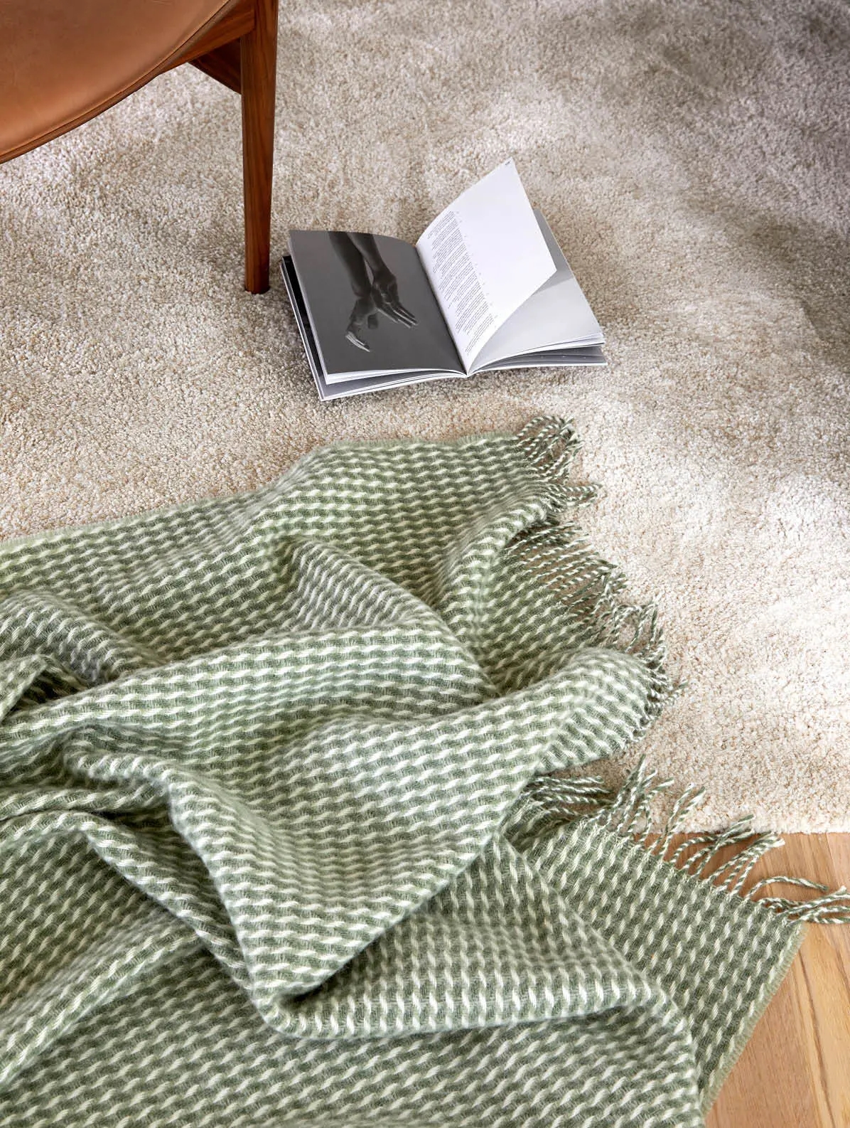 Høie of Scandinavia plaid med frynser i dessin Teide Muted Green i 100% ren ny uld.