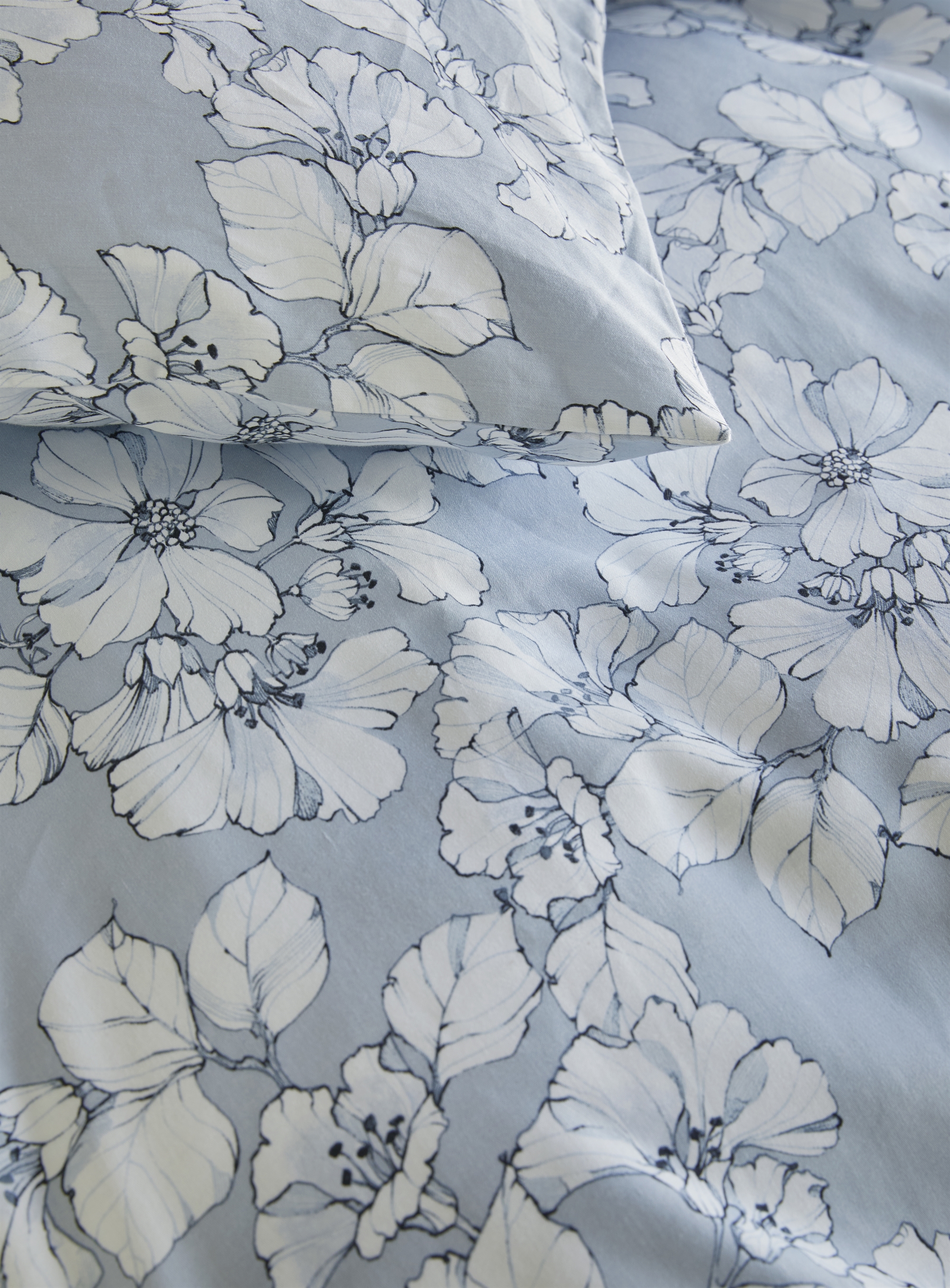 Høie of Scandinavia sengetøj, Amelia Dusty Blue er fremstillet i 100 % bomuldssatin.