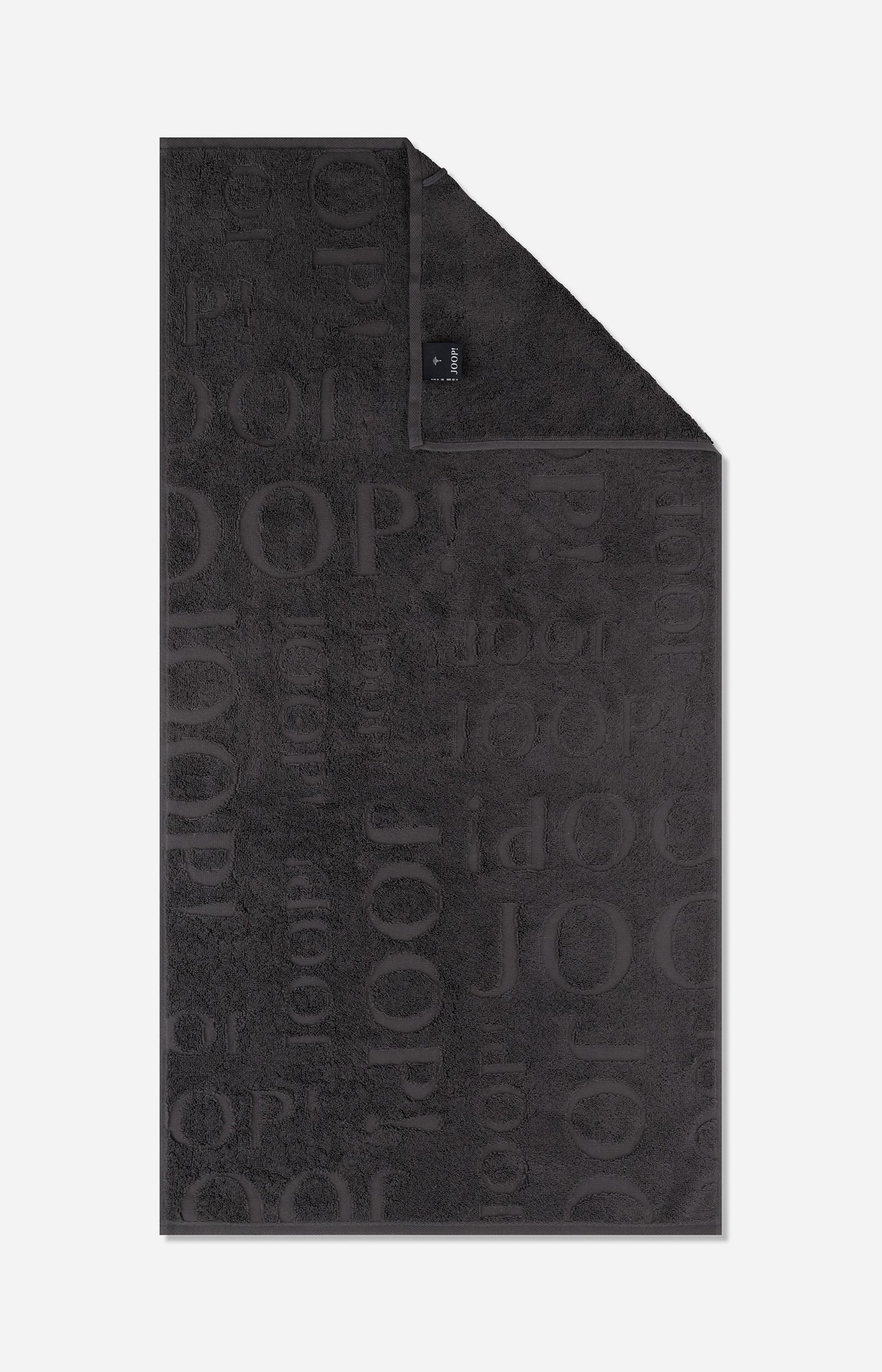 JOOP! håndklæde i 100% bomuld, Studio Repeat Basalt håndklædet er dækket af JOOP! logoet i forskellige størrelser. Håndklædet har en god sugeevne.