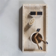 Hver tandbørsteholder er fremstillet af travertin, en natursten kendt for sine unikke mønstre og naturlige tekstur. Kombinationen af det robuste materiale og det enkle design sikrer et holdbart produkt, der både er praktisk i brug og elegant i sit udtryk.
