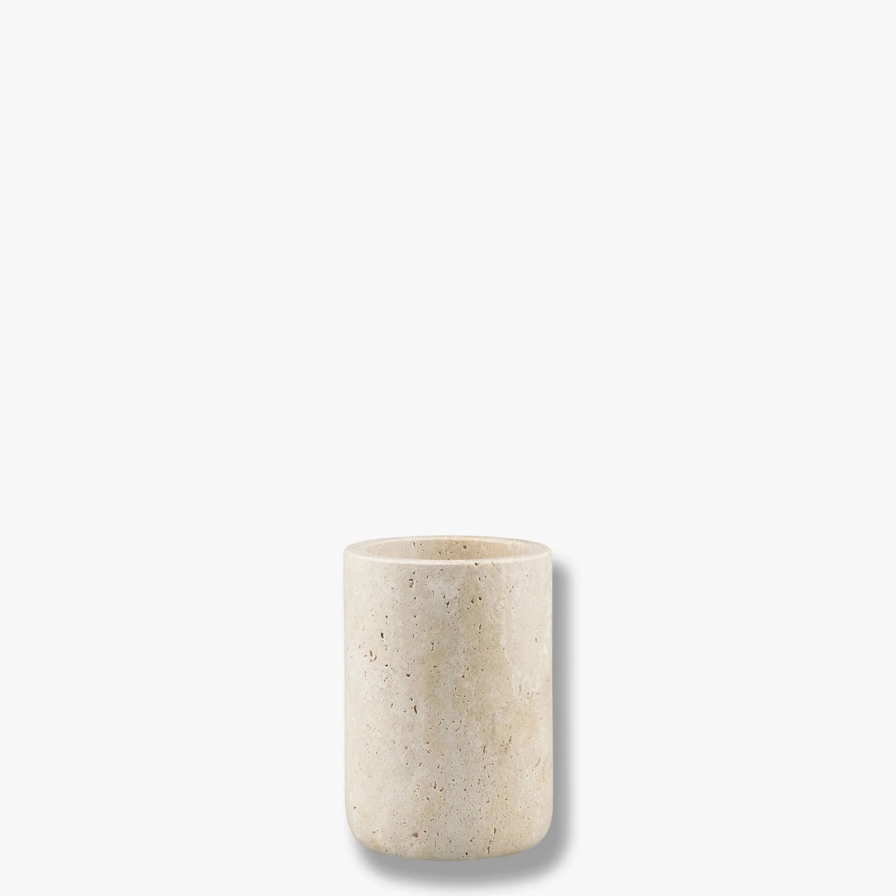 TRAVERTIN-tandbørsteholderen fra Mette Ditmer er skabt til at holde styr på tandbørster, makeupbørster eller andre småting, der skal organiseres på badeværelset. Med sit enkle og funktionelle design gør kruset det nemt at skabe orden og tilfører samtidig et stilfuldt element til rummet.