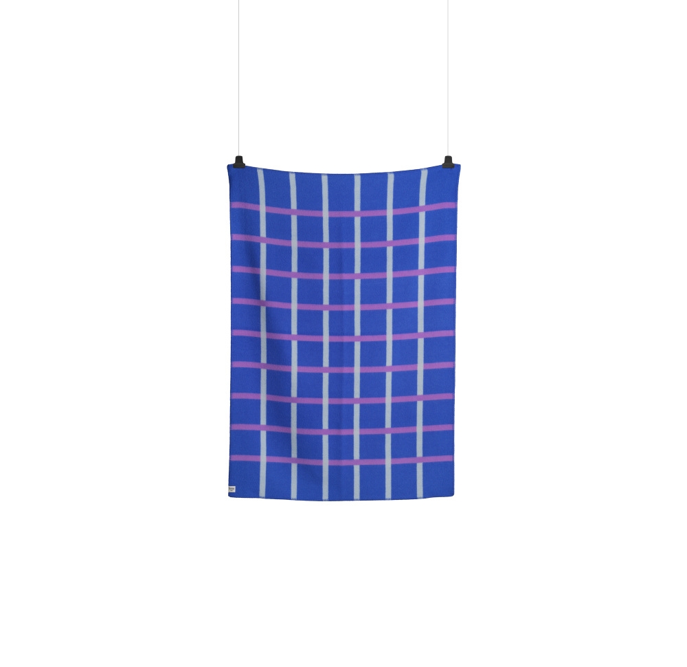 Knut henter inspiration fra vævningens grundstruktur og skabelsesproces, hvor trådene danner et krydsmønster. Designet er et stramt gitter, hvor lodret møder vandrette linjer, og noderne danner en ny farve i en overlappende effekt. Når du breder tæppet om dig, kan de samme linjer læses som bølger.